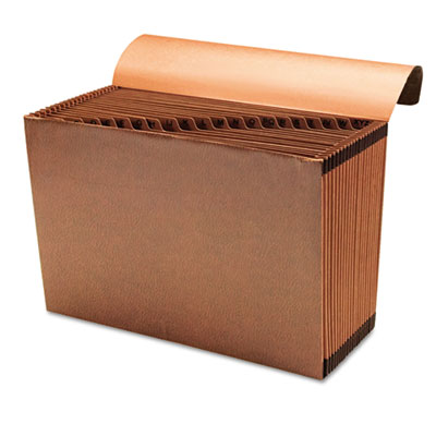 Heavy-duty leather-like expanding files are virtually indestructable. Double thick front and back panels with heavy reinforced liner board for added durability. Tyvek® reinforcement at the top and bottom for extra strength. Full height gussets won't catch on drawer sides. Choose from alphabetic (A-Z), daily (1-31) or monthly (January-December) preprinted indexes. Expandable File Folder Type: Elastic Cord Closure; Indexed; Wallet; Size: Legal; Width: 15".