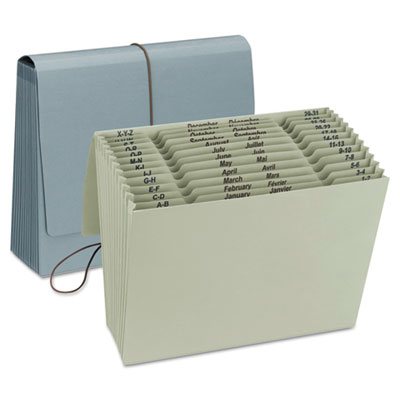This 12-pocket expanding file is made of 100% recycled stock and comes in two nature inspired colors. Indexed three ways: alphabetic (A-Z), monthly (Jan.-Dec. in English and French), and daily (1-31) for optimal filing flexibility. Elastic cord and flap provide security for your important documents. Expandable File Folder Type: Elastic Cord Closure; Indexed File; Size: Letter; Width: 10".