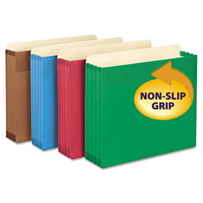 Offers two distinct advantages over standard pockets-the full height gusset prevents the file from catching on side rails in file drawers and EasyGrip™ provides twice as much grip as standard pocket. Manage bulky records with these sturdy pockets that keep papers from slipping out. Expandable File Folder Type: Expanding Wallet; Size: Letter; Width: 11 3/4".