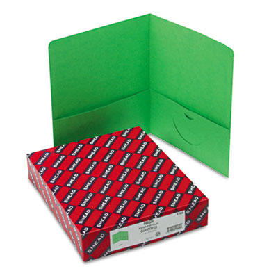 SMD87855 Two-Pocket Portfolio, Embossed Leather Grain Paper, Green, 25/Box By SMEAD MANUFACTURING CO.