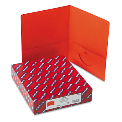 SMD87858 Two-Pocket Portfolio, Embossed Leather Grain Paper, Orange, 25/Box By SMEAD MANUFACTURING CO.