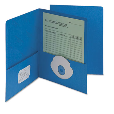 Colorful two-pocket folders hold documents securely inside while keeping them easily accessible. Product treated to resist the growth of bacteria, mold, and mildew that can cause stains, odors and product deterioration. Acid free, archival quality makes it safe for long-term storage of documents, records, photos. Left pocket is die cut to hold a business card; right pocket is die cut to hold electronic media. Front Cover Color(s): Blue; Back Cover Color(s): Blue; Sheet Size: 11 x 8 1/2.