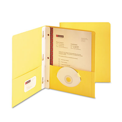SMD88062 Paper Two-Pocket Portfolio, Tang Clip, Letter, 1/2" Capacity, Yellow, 25/Box By SMEAD MANUFACTURING CO.
