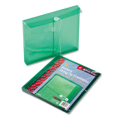 SMD89523 Poly String & Button Booklet Envelope, 9 3/4 x 11 5/8 x 1 1/4, Green, 5/Pack By SMEAD MANUFACTURING CO.