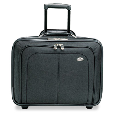 Versatile case has multiple compartments for business essentials and overnight packing, as well as a padded honeycomb laptop compartment. Gusseted pockets organize pens, business cards and calculator. Fully lined interior and padded handles plus a zip-away, retractable handle and shock absorbing SoftSpin wheels. SmartPocket™ feature allows you to slide case over handle of upright luggage for easy transport. For Device Type: Calculator;Notebook; Material(s): Ballistic Nylon; Carrying Method: Padded Handle;Retractable Handle.
