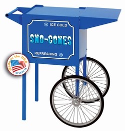 Increase your sales and convenience with a spoke-wheel, sno-cone cart. Our steel carts – custom designed for Paragon sno-cone machines -- are finished with powder-coat paint that resists chipping. Carts have a storage area and are easy to break down for storage and transportation. Actual Dimensions: 21"D x 34"W x 33"H
