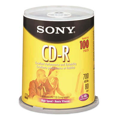 SON100CDQ80RS CD-R Discs, 700MB/80min, 48x, Spindle, Silver, 100/Pack By SONY ELECTRONICS, INC.