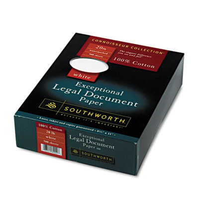 SOU33C 100% Cotton Legal Document Paper, White, 20 lbs., Wove, 8-1/2 x 11, 500/Box By SOUTHWORTH CO.