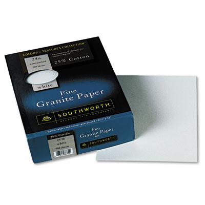 SOU924C Granite Specialty Paper, White, 24 lbs., 8-1/2 x 11, 25% Cotton, 500/Box By SOUTHWORTH CO.