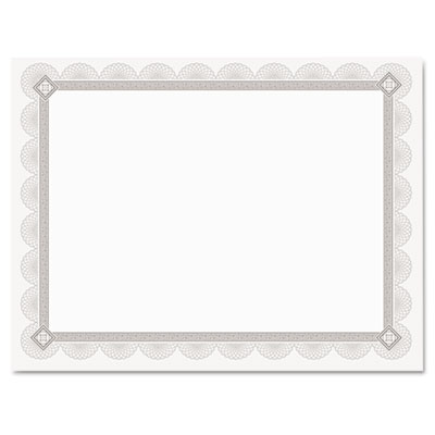 Premium 66 lb. weight certificates are sure to be proudly displayed. Foil enhanced border design give substance to the most deserved awards. Recyclable, acid-free and elemental chorine-free. 11" x 8 1/2". Theme: Spiro Border; Shape: Rectangular; Width: 11".