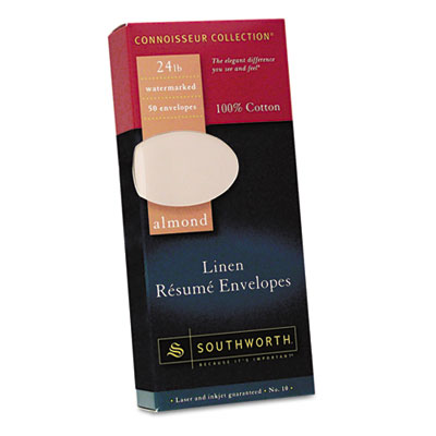 SOUR14ALN10L 100% Cotton Linen #10 Resume Envelope, Almond, 24 lbs., 50/Box By SOUTHWORTH CO.