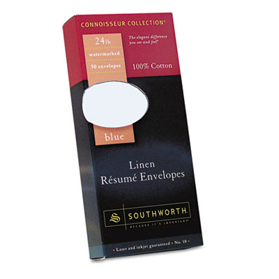 SOUR14BLN10L 100% Cotton Linen #10 Resume Envelope, Blue, 24 lbs., 50/Box By SOUTHWORTH CO.