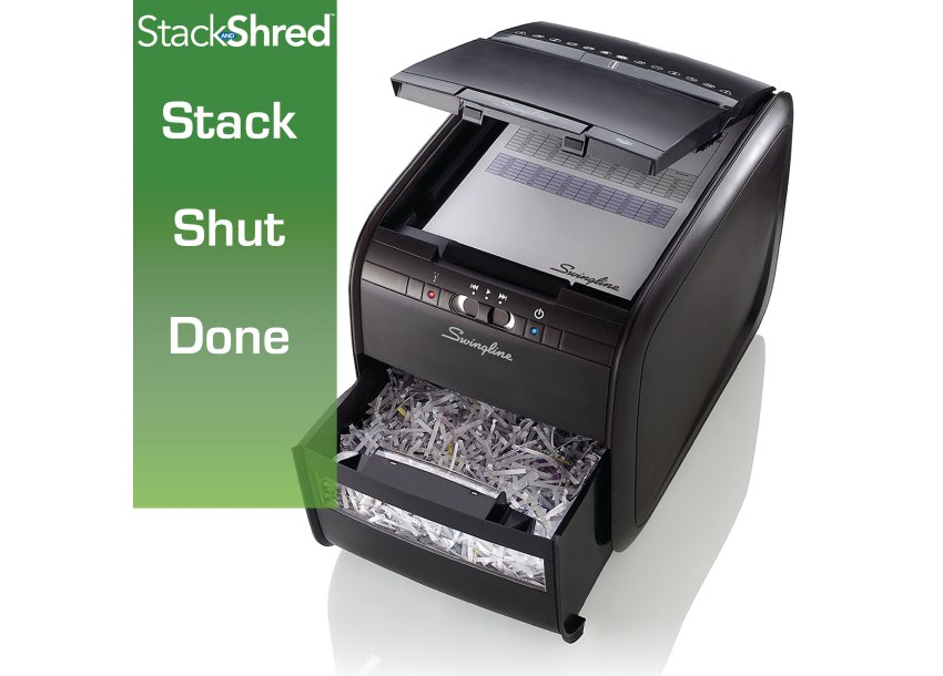 - Spend less time shredding versus a traditional shredder - just stack, shut and you're done
