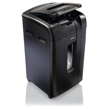 Swingline is America's #1 Selling Brand in Hands Free Shredders and the Stack-and-Shred™ shreds all on its own; just stack, shut and you're done. Shreds 750 sheets automatically (up to legal size) and includes Intelligent Auto+® Jam Clearance/Interactive Jam Clearance technology to save time and increase productivity. Super cross-cut shred style and lockable paper chamber make the 750X a great choice for large offices.