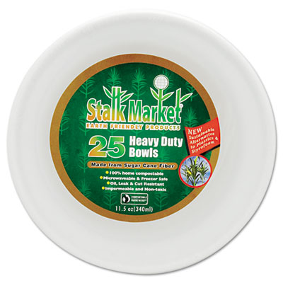 100% tree- and plastic-free dinnerware is made from molded sugarcane fiber. Microwavable and freezer safe. High-quality, oil- and cut-resistant. Dinnerware Type: Bowl; Material(s): Sugarcane; Capacity (Volume): 11.5 oz.