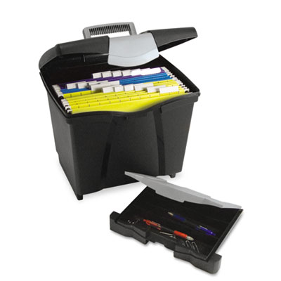 STX61523U01C Portable File Storage Box w/Drawer, Letter, Latch, Black By STOREX