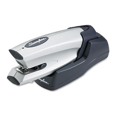 Ready wherever and whenever you work—without the hassle of replacing the batteries. Powerful rechargeable batteries deliver 2,000 staples on a single charge. Adjustable docking station. Paper adjustment guide. Low staple indicator. Safety shut-off. Durable plastic and metal construction. Throat depth adjustable to 1". Front loads a full strip of (210) of standard staples. Package includes 6 ft. recharger cord and rechargeable battery. 100% Performance Guarantee—Guaranteed to perform at the highest standards for the life of the warranty (assuming normal product usage) or Swingline will replace the product. Stapler Type: Electric; Staple Capacity: Full Strip (210 Staples); Size of Staple Used: 1/4".