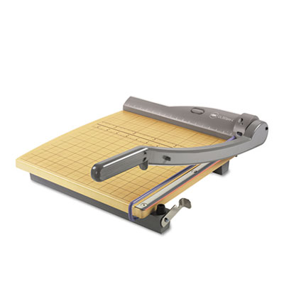 A laser lights the way to a precise cut. Ideal for large offices, schools, hobby and photography. Durable self-sharpening blade cuts up to 15 sheets. Includes a finger guard, protective guard rail and latch hook that locks the blade. Alignment guide grid and ruler. Wood composite and metal base with non-skid rubber feet. Trimmer Board Type: Bypass; Sheet Capacity: 15; Cut Length: 15".