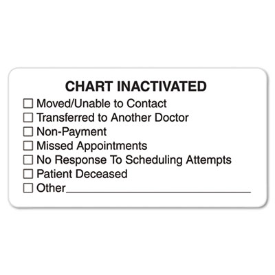 TAB01540 "Chart Inactivated" Medical Labels, 1-3/4 x 3-1/4, White, 250/Roll By TABBIES