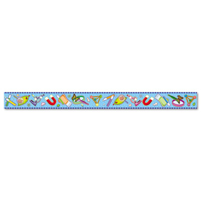 Use colorful border trim to liven up your classroom! Create fresh looks for bulletin boards, windows, walls and class projects. Theme: Subjects; Design: Art; Math; Reading; Science.