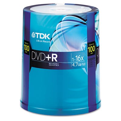 TDK48521 DVD+R Discs, 4.7GB, 16x, Spindle, 100/Pack By TDK ELECTRONICS