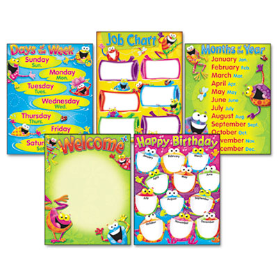 TEPT38970 Learning Chart Combo Pack, Frog-tastic! Classroom Basics, 17w x 22, 5/Pack By TREND ENTERPRISES, INC.