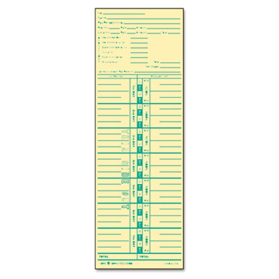 Equivalent to OEM-furnished time clock cards. Extra-heavy 150-lb. card stock. Size: 3 1/2 x 10 1/2; Time Period: Weekly; Printing Sides: One Side.