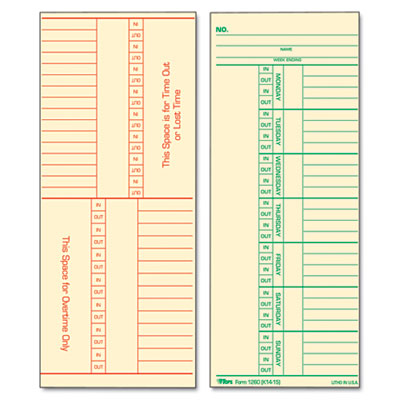 TOP1260 Time Card for Cincinnati, Named Days, Two-Sided, 3-3/8 x 8-1/4, 500/Box By TOPS BUSINESS FORMS