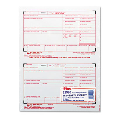 Updated each year to meet IRS regulations. For employers to report employee income and withholding taxes to the federal government. For laser printers. Form Size: 8 1/2 x 5 1/2; Forms Per Page: 2.