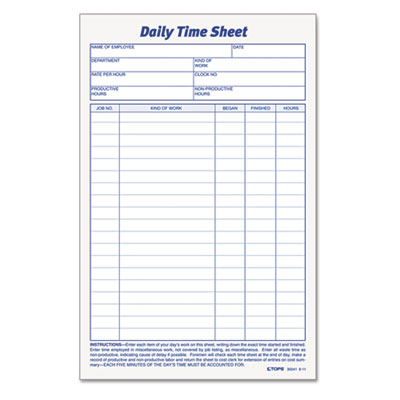 TOP30041 Daily Time and Job Sheets, 6 x 9-1/2, 100/Pad, 2/Pack By TOPS BUSINESS FORMS
