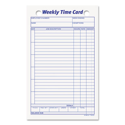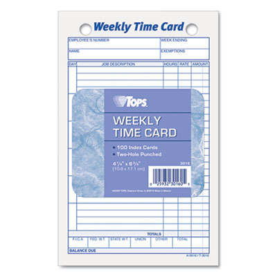 TOP3016 Employee Time Card, Weekly, 4-1/4 x 6-3/4, 100/Pack By TOPS BUSINESS FORMS