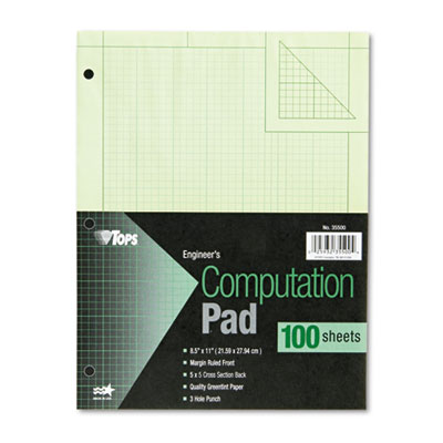 TOP35500 Engineering Computation Pad, Quad Rule, Letter, Green, 100 Sheets/Pad By TOPS BUSINESS FORMS