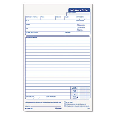 TOP3868 Snap-Off Job Work Order Form, 5 1/2 x 8 1/2, Three-Part Carbonless, 50 Forms By TOPS BUSINESS FORMS
