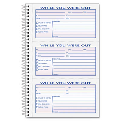 TOP4006 Spiralbound Message Book, 2 5/6 x 5, Carbonless Duplicate, 300 Sets/Book By TOPS BUSINESS FORMS