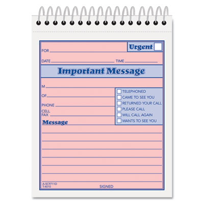 Quick check-off style with special area for fax and mobile phone numbers. Space for important phone numbers. Copies remain in book as permanent record. Form Size: 4 1/4 x 5 1/2; Forms Per Page: 1.