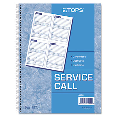 TOP4100 Service Call Book, 4 x 5 1/2, Two-Part Carbonless, 200 Sets/Book By TOPS BUSINESS FORMS