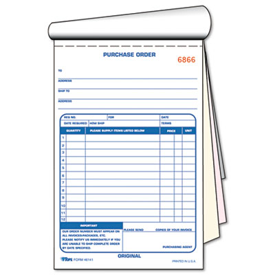 TOP46141 Purchase Order Book, 5-9/16 x 7 15/16, Three-Part Carbonless, 50 Sets/Book By TOPS BUSINESS FORMS