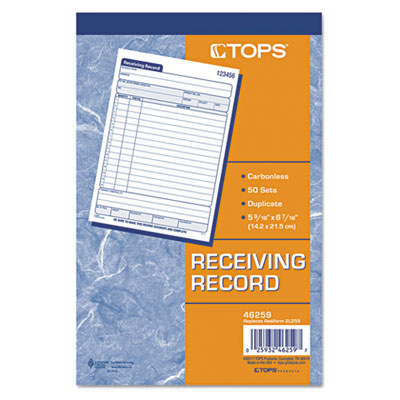 TOP46259 Receiving Record Book, 5 1/2 x 7 7/8, Two-Part Carbonless, 50 Sets/Book By TOPS BUSINESS FORMS