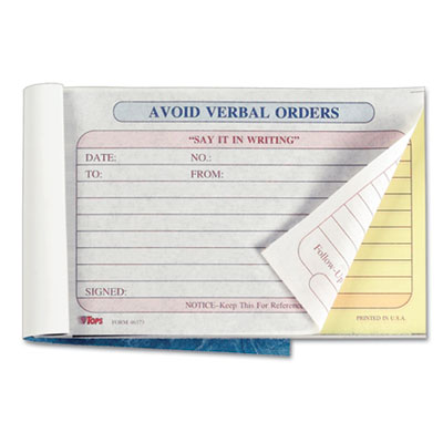 TOP46373 Avoid Verbal Orders Manifold Book, 6 1/4 x 4 1/4, Two-Part Carbonless, 50 Sets/Book By TOPS BUSINESS FORMS