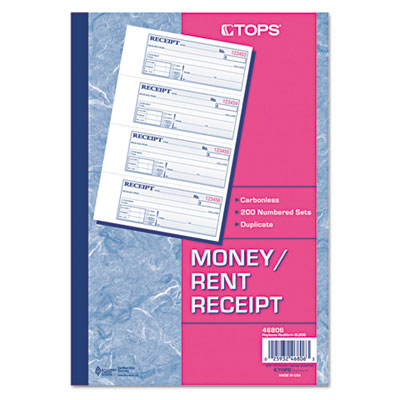TOP46806 Money and Rent Receipt Books, 2-3/4 x 7 1/8, Two-Part Carbonless, 200 Sets/Book By TOPS BUSINESS FORMS
