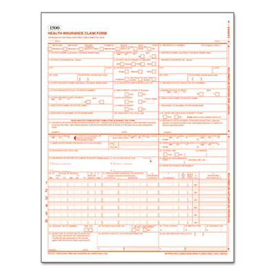 CMS-1500 claim forms (formerly known as HCFA-1500 claim forms) expedite Medicare, Medicaid or private insurance benefits. OCR red ink for scanning. Form Size: 8 1/2 x 11; Forms Per Page: 1.