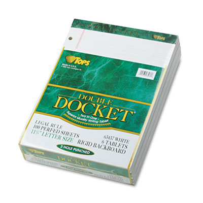 TOP63437 Double Docket Ruled Pads, Legal Rule, Letter, WE, 6 100-Sheet Pads/Pack By TOPS BUSINESS FORMS