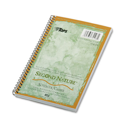 TOP74108 Second Nature Subject Wirebound Notebook, Narrow Rule, 5 x 8, WE, 80 Sheets By TOPS BUSINESS FORMS