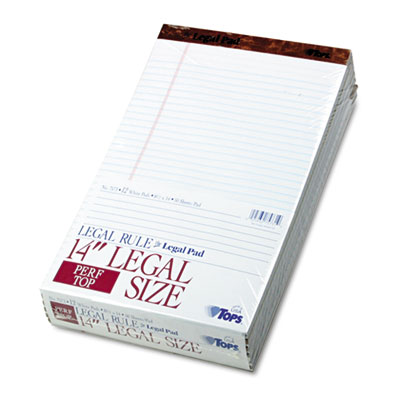 TOP7573 The Legal Pad Legal Rule Perforated Pads, 8-1/2 x 14, White, 50 Sht Pads, 12/Pk By TOPS BUSINESS FORMS