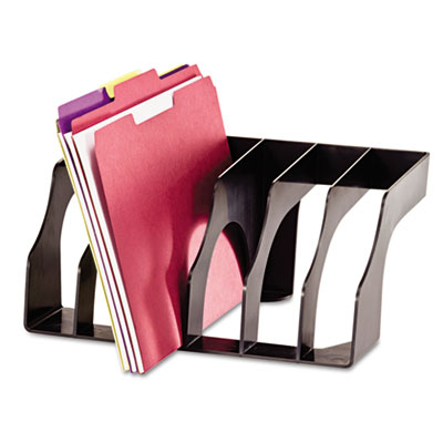 Made to hold your binders, catalogs, books and other large publications for easy access. Can be used vertically or horizontally. Desktop File Folder Sorter Type: Combination File Sorter; Number of Compartments: 6; Material(s): Plastic.