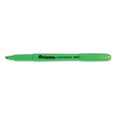 UNV08852 Pocket Clip Highlighter, Chisel Tip, Fluorescent Green Ink, 12/Pk By UNIVERSAL OFFICE PRODUCTS