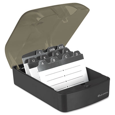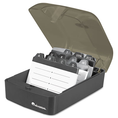 UNV10600 Push-Button Business Card File, Plastic, 4 x 5 3/4 x 2 3/4, Black/Smoke By UNIVERSAL OFFICE PRODUCTS
