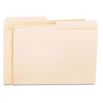 Classic folder constructed to resist tearing. Bottom triple-scored for no-sag expansion. Undercut at tabs for increased indexing area. 11 pt. Manila stock. File Folder Type: Top Tab; Size: Letter; Folder Material: 11 pt. Manila.