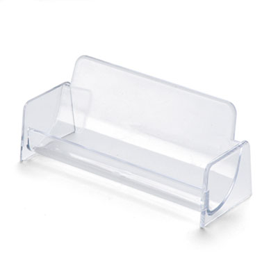 Simple design showcases your business cards. Sturdy plastic construction. Manufacturer's one-year limited warranty. Card Holder Type: Business Card Holder; Card Capacity: 50; For Card Size: 2 1/4 x 4.