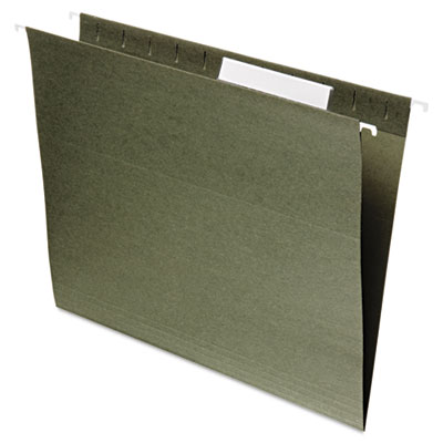Environmentally friendly standard green hanging folders not only help save your important files but also help save the environment at the same time. Clear tabs with blank inserts included. Hanging File Folder Type: Recycled Standard; Size: Letter.